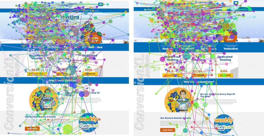 Study Task 1. We used eye-tracking to quantify user perception of the web page. We manipulated web hosting site Host Gator so it contained different social proofs.